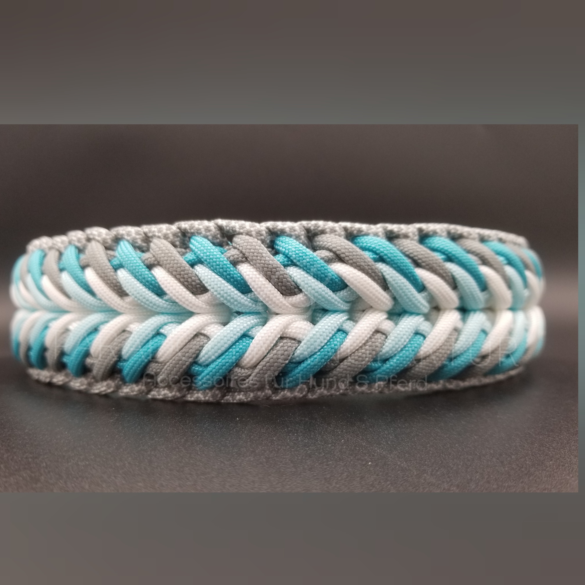 Das Halsband "Nanuk" aus Paracord Typ 3 ist mit einer Breite von etwa 4,0cm ideal für mittelgroße bis große Hunde geeignet.